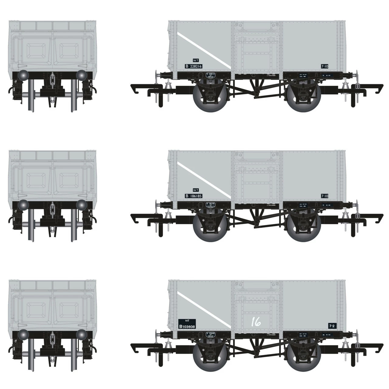 With all British Railways’ 16T types designed and tooled, this first run follows the story of the unfitted Morton braked wagons, with 1/108, 1/109 and MCO rebodied versions being released in a variety of liveries and running gear combinations.