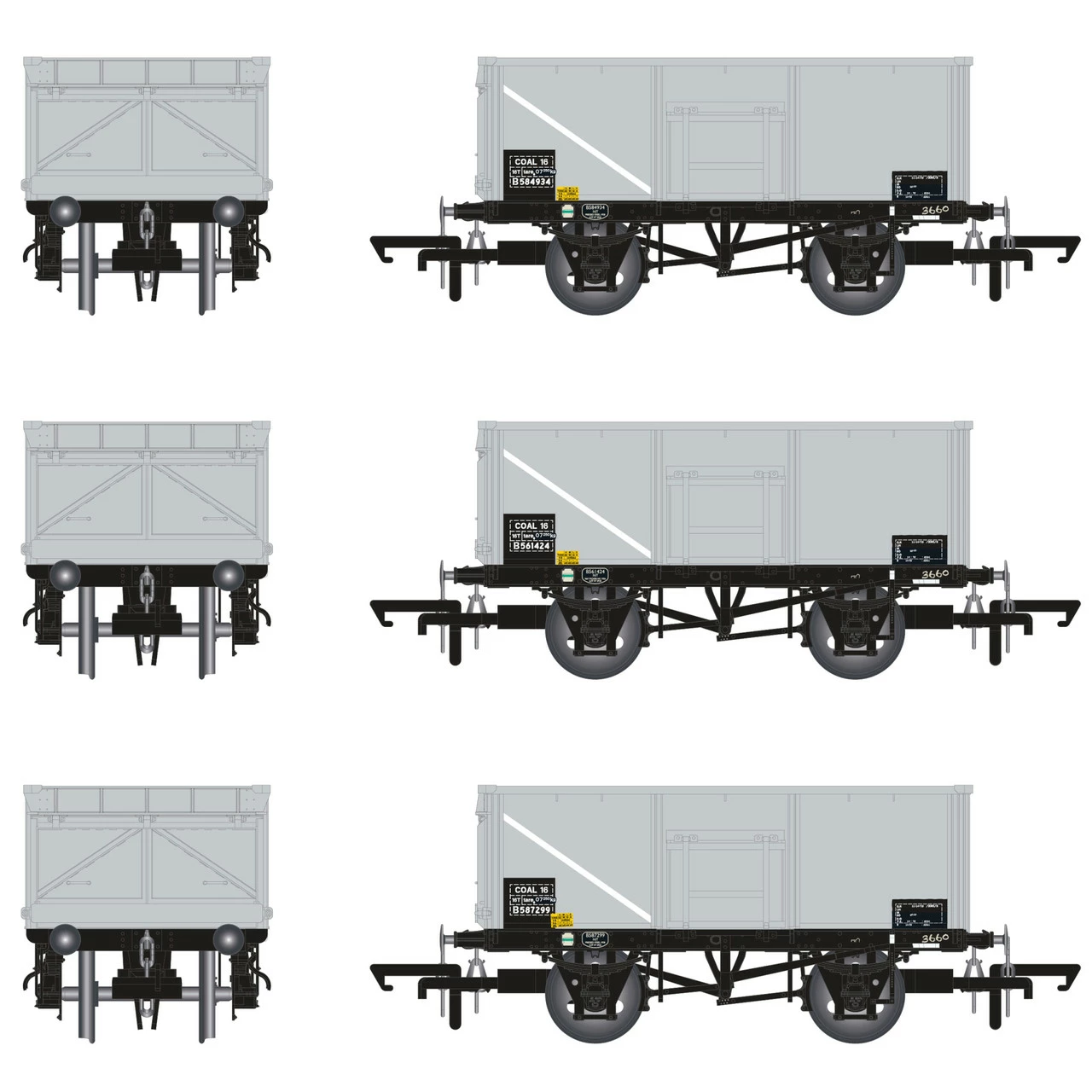 With all British Railways’ 16T types designed and tooled, this first run follows the story of the unfitted Morton braked wagons, with 1/108, 1/109 and MCO rebodied versions being released in a variety of liveries and running gear combinations.