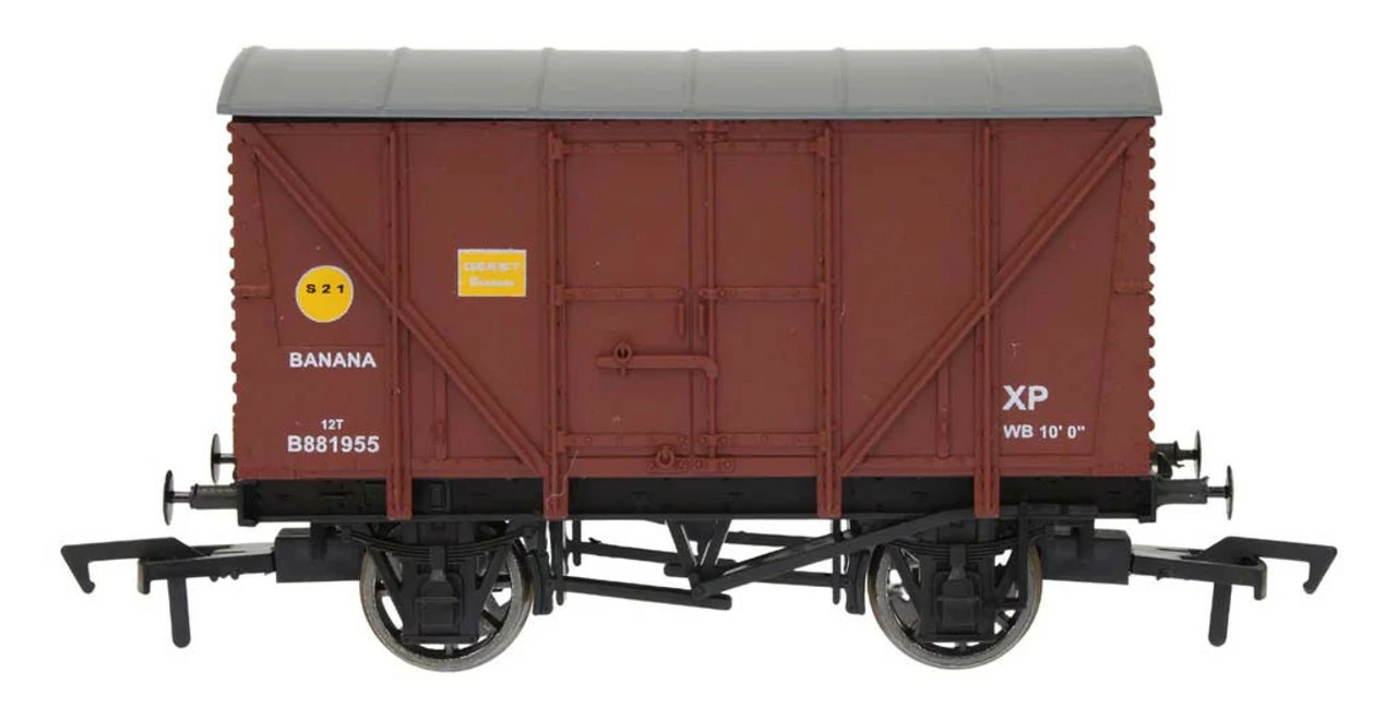 The Dapol model of the banana van is of a later 1950’s built variant that was steam piped allowing the easy running of interconnected block trains.