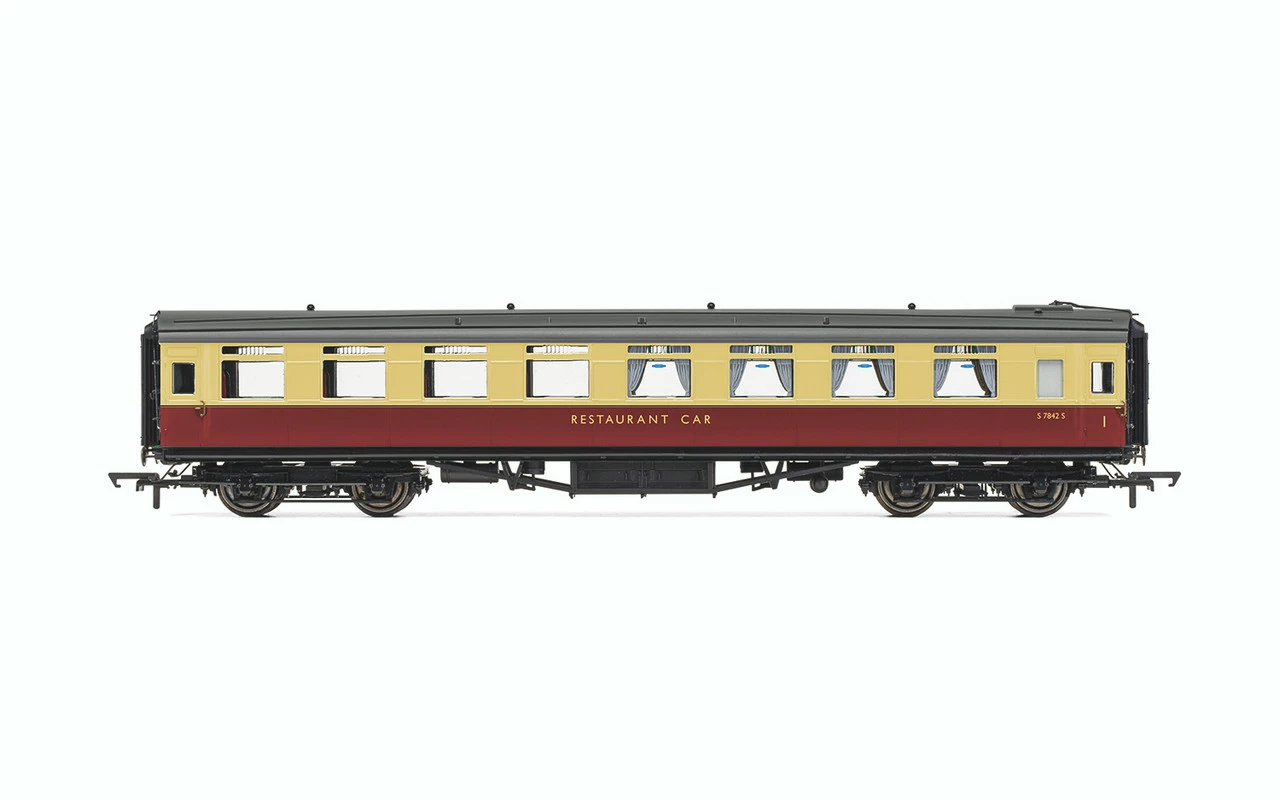 Whereas a further 40 kitchen/dining Firsts were built to the same ‘low-window’ style from 1929 onwards, accompanying Third Class dining was felt to be better served by the new ‘high-window’ Open Third Saloons and as a consequence, from 1930, the six Third Class Restaurant Dining Saloons were reclassified as Open Thirds. In 1947 the six coaches received updated interiors, with four of the coaches becoming composite coaches and two becoming First Class Coaches. The four composite coaches, nos. 1365-1368, served on the South Western section of the railway network paired with diagram 2659 Kitchen & Buffet Cars.