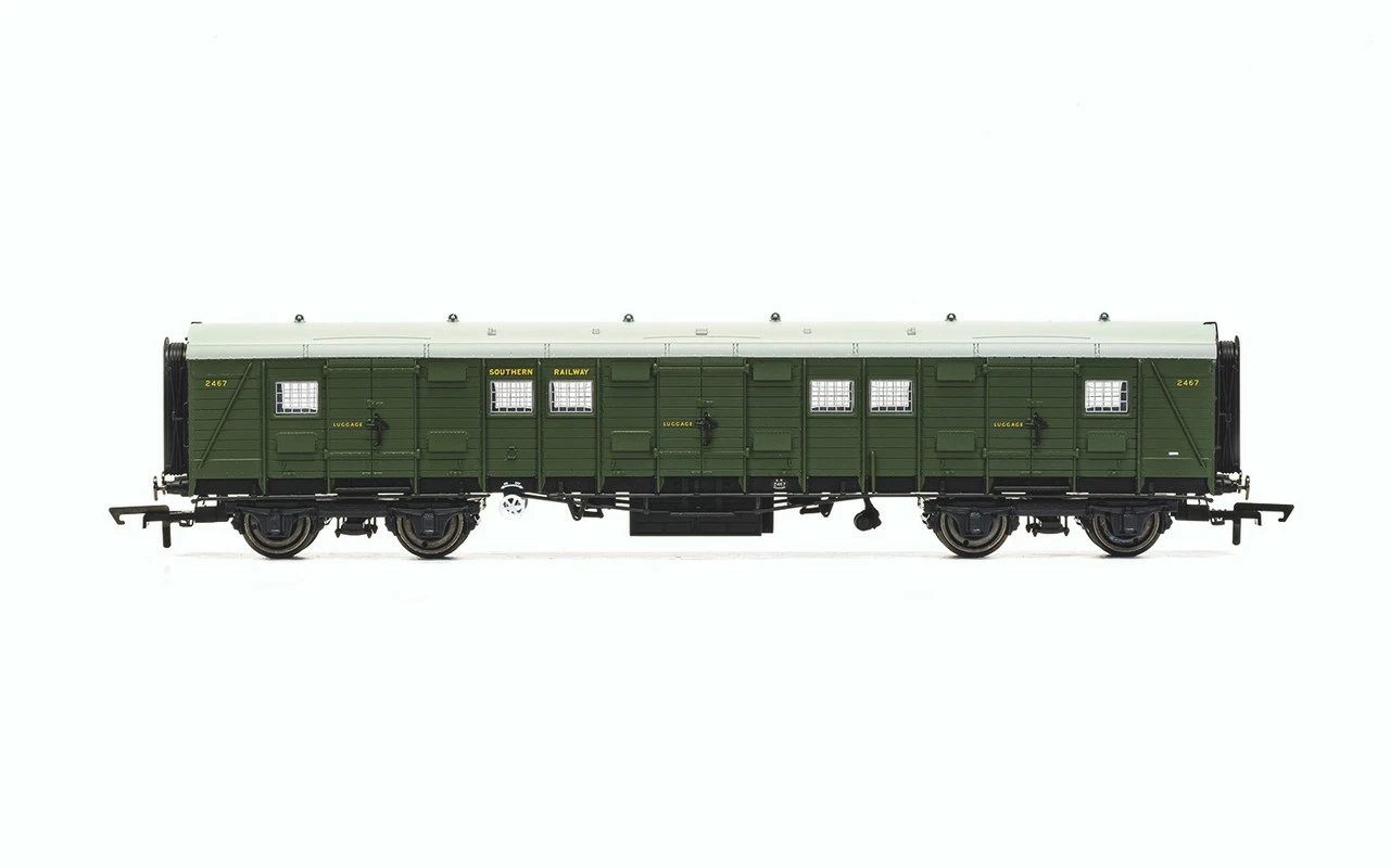 The Southern Railway Ganward Bogie Luggage Vans were initially introduced in SR Olive Green livery, a very small number gained malachite. Under British Railways they were in crimson, with as few as six painted BR Green.