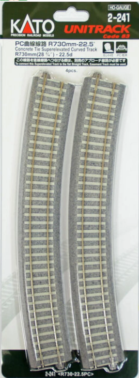 Kato HO Gauge Unitrack Concrete Tie Superelevated Curved Track 22.5 Degree 4pcs 2-241