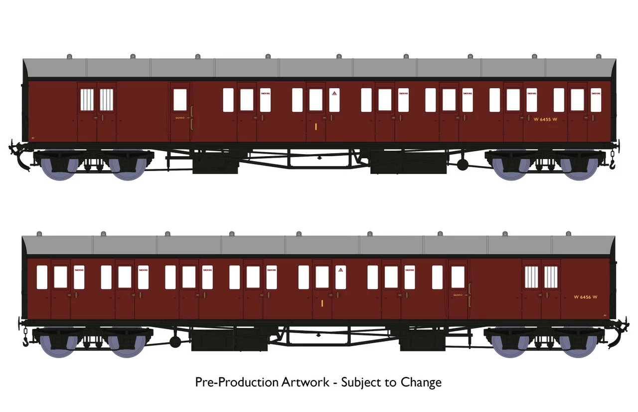 These coaches were longer and wider than previous designs and necessitated recessed door handles and Guards doors. They ran on 7ft wheelbase bogies. A total of 41 Dia. E140 sets of coaches were built.