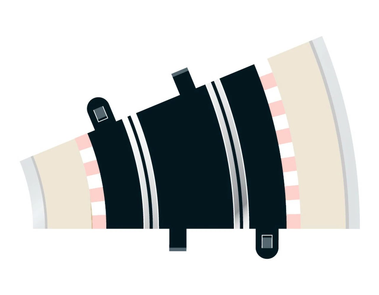Contents Radius 2 Curve 22.5 degree x 2 Push-fit Scalextric track for quick and easy circuit building. Connect modern Scalextric track to original track (which has ring-shaped connectors) using the C8222 Converter Straight. Shown with C8280 Radius 2 Inner Borders 22.5° and C8239 Radius 2 Outer Borders 22.5° (not included).